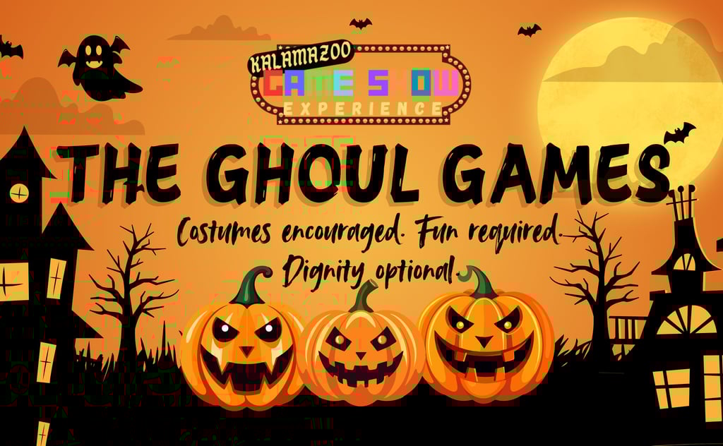 On Saturday, October 25th, the Kalamazoo Game Show Experience transforms into a haunted arena of absolute nonsense — where pumpkins roll, pies fly, and grown adults question their life choices in the name of glory.