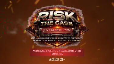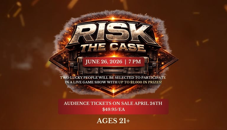 RISK THE CASE is a live game show experience where TWO contestants will be selected to participate in a live game with up to $2,000 in prizes!